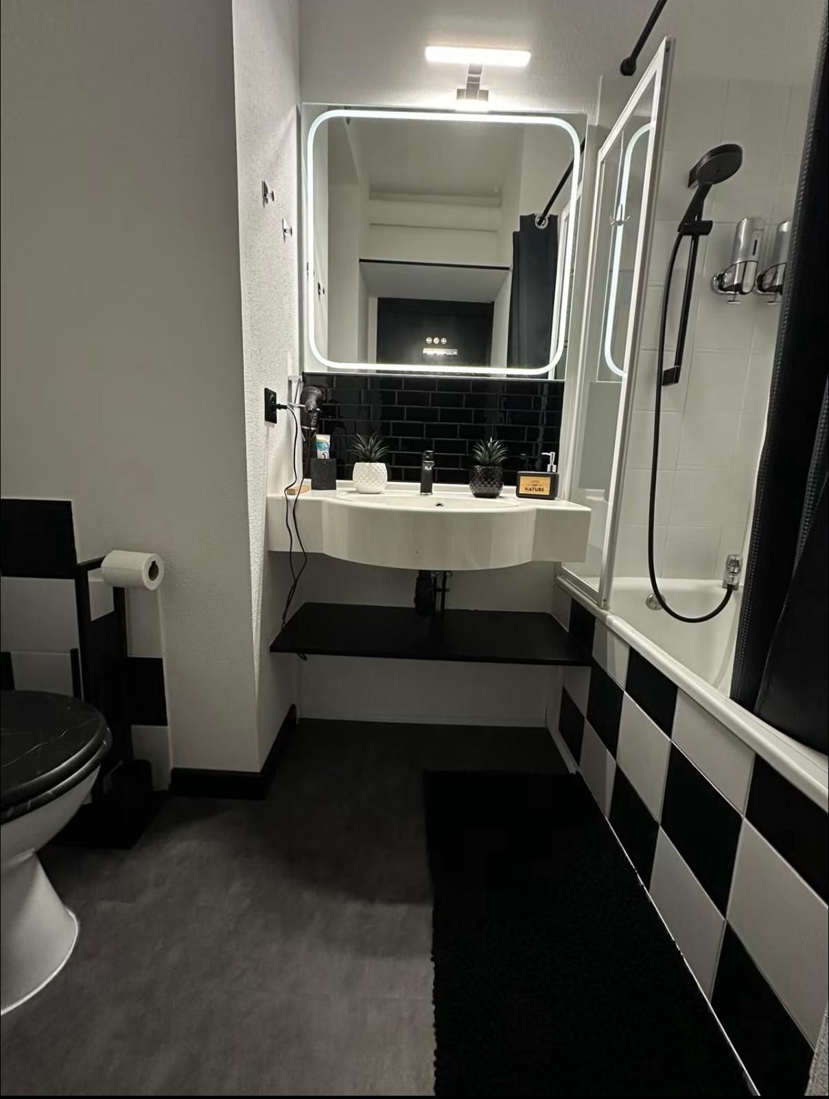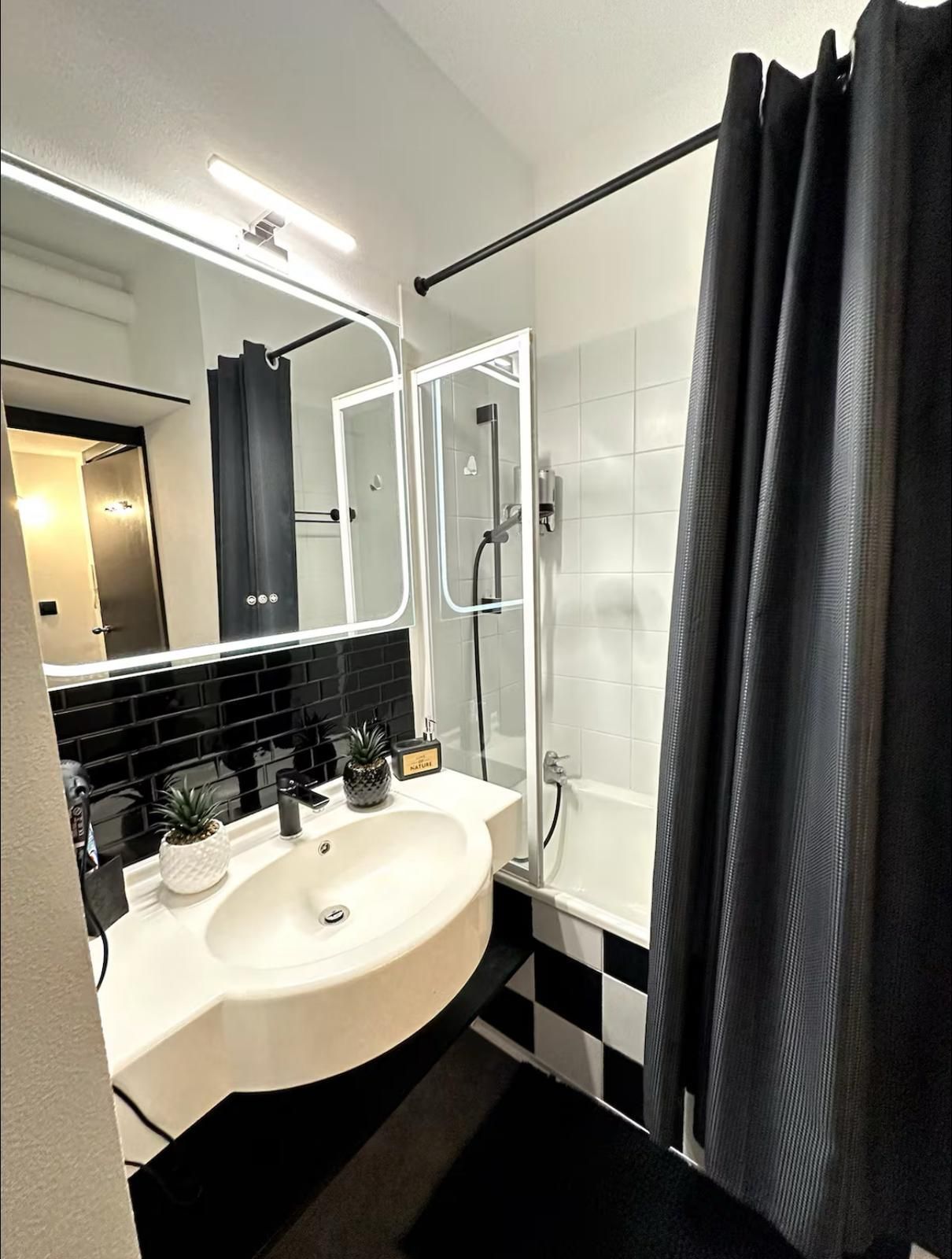 Le studio est composé d’une chambre, une salle de bain avec douche et WC, une kitchenette,